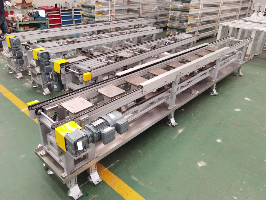 В новой энергетической промышленности конвейеры с двумя скоростями бесценны. Такие продукты, как фотоэлектрические модули, требуют точного позиционирования и транспорта во время транспортировки, а конвейеры с двумя скоростями точно соответствуют этому требованию, обеспечивая стабильное и точное положение продукта и транспортировку. Это преимущество имеет решающее значение, поскольку оно значительно снижает вероятность повреждения продукта во время транспортировки, обеспечивая надежную гарантию для безопасного транспортировки новых энергетических продуктов.